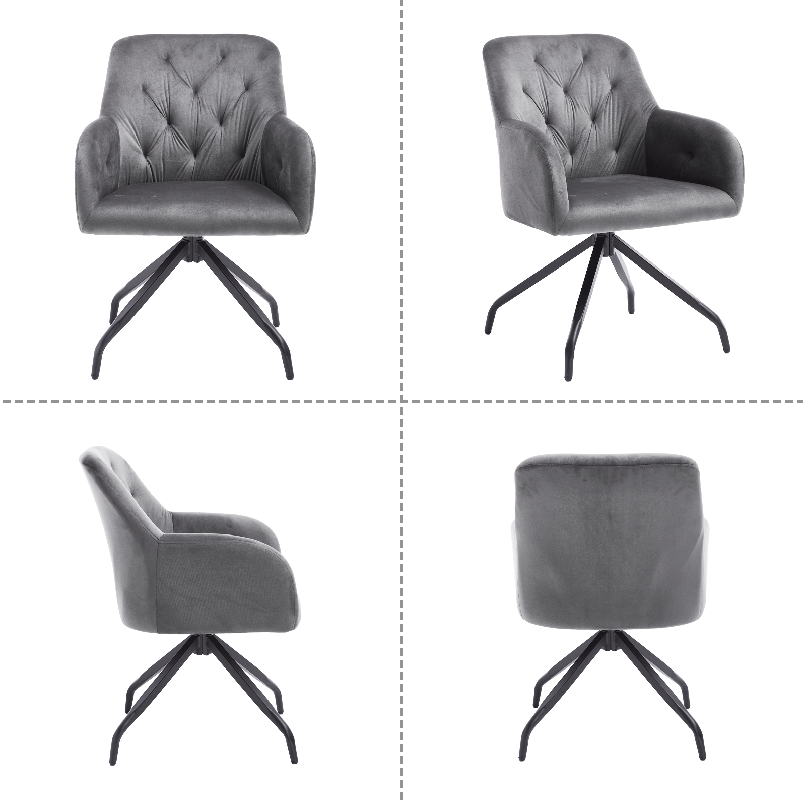 Kaufhof 360° drehbare Esszimmerstühle/Armlehnstühle 2er Set Samt Grau